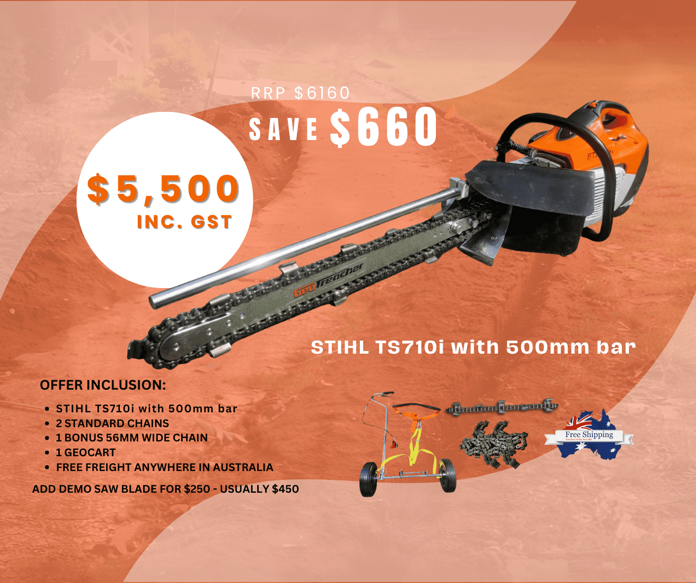 The STIHL TS710i Package Deal is a premium trenching solution built for Australian contractors who demand power, precision, and reliability on every job site.